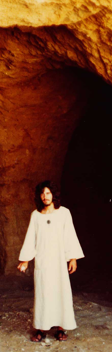 Begegnungen on the road, die Beatles und Cat Stevens im Ohr, die Gitarre am Rücken verarbeite ich die Seventies in einem Roadmovie-Roman «Saitenstrassen»basierend auf den Tagebüchern von M.J. Nach Auftritten im legendären «Troubadour» in Los Angeles (Joni Mitchell, Bob Dylan), der 6-monatigen Überlandreise von Kalifornien nach Brasilien, zwei Trips nach Marokko (siehe Höhlenbild weiter unten) und Ägypten, lasse ich mich auf einer kleinen Mittelmeerinsel nieder. Zwischen Himmel und Meer schreibe ich in meiner Hobbit-Höhle im Berg, komponiere mit meinen «mediterranen Brüdern»: Younes Meghri (Marokko), Georges Moustaki (Frankreich), Ahmed Kaya (Türkei), Fabrizio de André (Italien), Paco de Lucia (Spanien), Al Stewart (Mallorca), Cat Stevens (Griechenland & England).